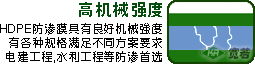 高機(jī)械強(qiáng)度— HDPE土工膜具有良好機(jī)械強(qiáng)度優(yōu)良的彈性和變形能力使其非常適用于膨脹或收縮基面,可有效克服基面的不均勻沉降,斷裂拉伸強(qiáng)度28MPa,斷裂延伸率700% 。