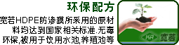 環(huán)保無毒性— HDPE土工膜采用的材料均為無毒環(huán)保材料,防滲原理是普通物理變化,不產(chǎn)生任何有害物質(zhì),是環(huán)保、水產(chǎn)養(yǎng)殖、飲用水池的最佳選擇。