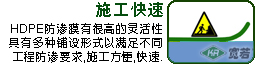 施工速度快— HDPE土工膜有很高的靈活性,有多種規(guī)格多種鋪設(shè)形式滿足不同工程防滲要求,采用熱熔焊接,焊縫強(qiáng)度高,施工方便、快速。