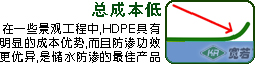 經(jīng)濟(jì)效益好— HDPE土工膜采用新型技術(shù)提高了防滲效果,但生產(chǎn)工藝更加科學(xué)、速捷,產(chǎn)品成本低于傳統(tǒng)防水材料,經(jīng)實(shí)際測算采用HDPE土工膜的工程要節(jié)約成本50%左右。